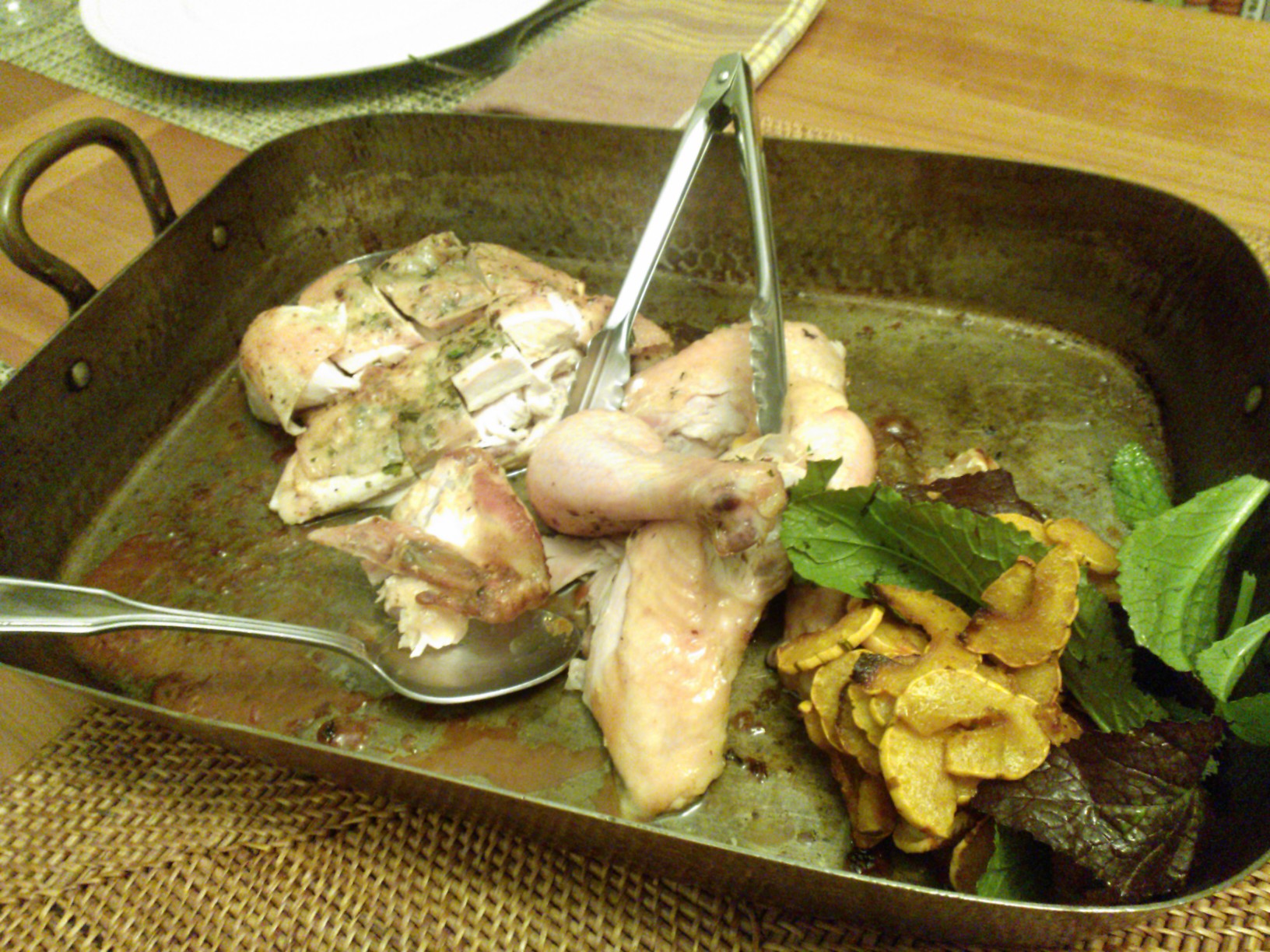 A few words about the preparation of the meal.  Despite having the ability to sauté, stove top braise and boil, some seemingly common place kitchen tasks took on the guise of a kitchen rubric,. For example washing and drying the salad greens required invoking the – use the extra bath towel rule.