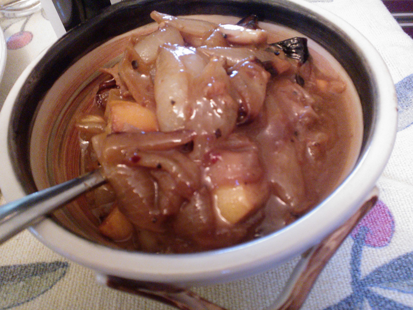 • a few of the said onions were pickled in a savory brine of vinegar (since we had extra for the salad), water, sugar, salt and pepper ( in those sad little packets available courtesy of room service)