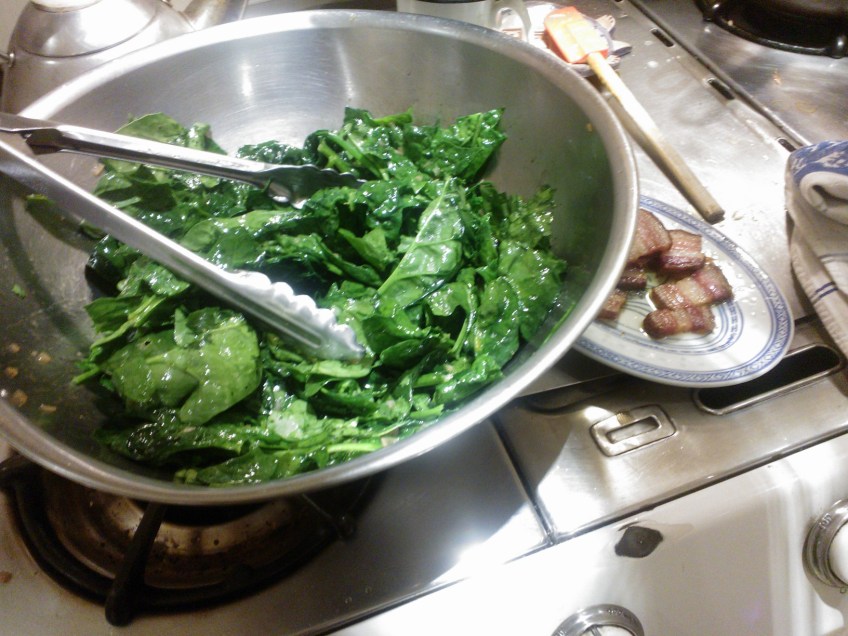 Making Warm Spinach Salad Published November 28, 2012 at 1632 × 1224 in Warm Spinach Salad with Bacon Lardons
